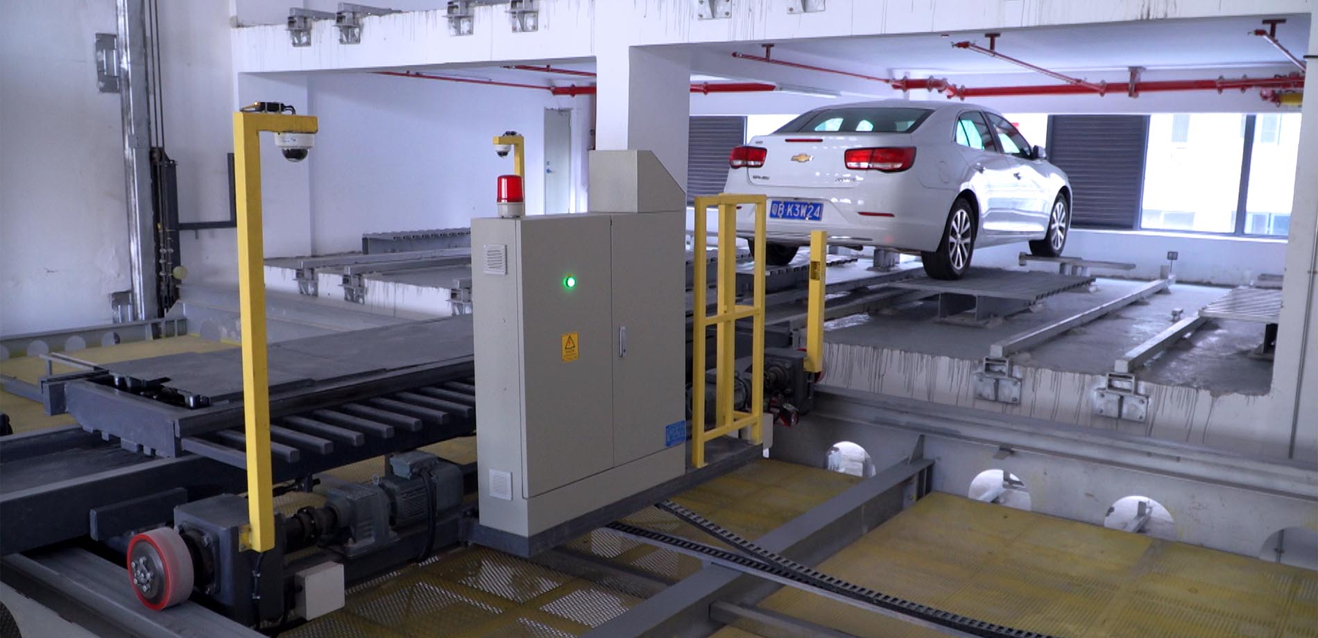 本項(xiàng)目為垂直升降類梳齒式立體車庫,一共9層,車庫配備5套升降機(jī),5套平移車及搬運(yùn)器,10個(gè)出入口,可以滿足周邊的停車需求。